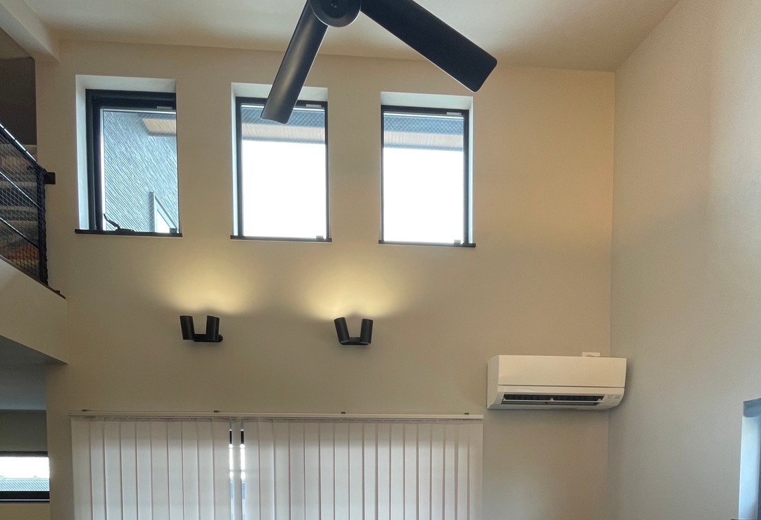 リビングの三連窓も軒の長さを調整しているから、まぶしくないよ◎