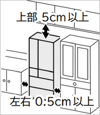 3ドア以上の冷蔵庫では、上部5cm以上・