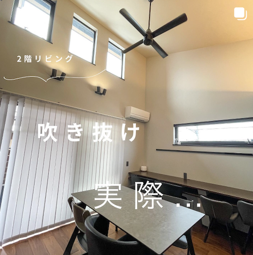 koko家は、湿気のこととか考えて吹き抜けとシーリングファンを採用したのが正解だった◎