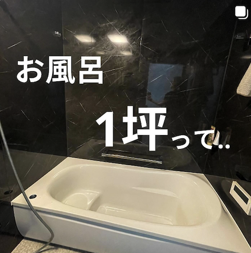 浴室は、1坪サイズ(1616)と呼ばれる160cm×160cmのユニットバス(約2畳)が一般的だよ。