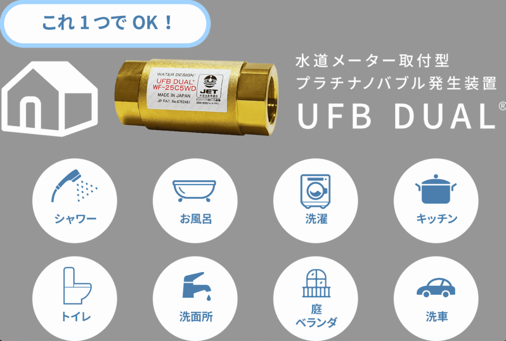 これ、追加費用なしで家じゅうの水がウルトラファインバブル水になるってこと。