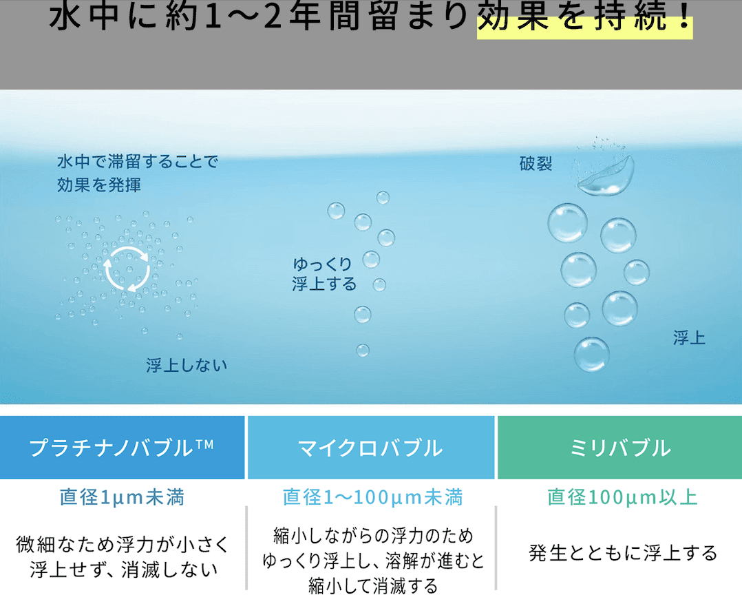 ウルトラファインバブルには、大きく分けて2つのタイプがあるんだけど、この違いを知らないと「効果なし」と感じてしまう原因になるの。