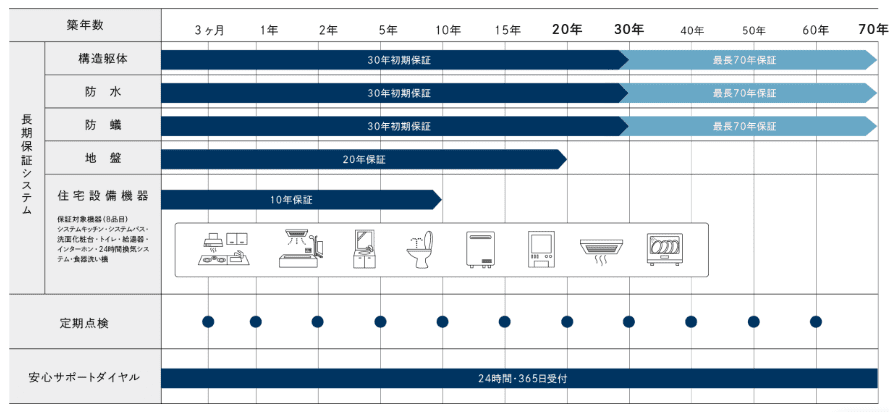 アイ工務店の保証内容で特徴的なのが、「初期30年保証」「10年間の住宅設備機器保証」